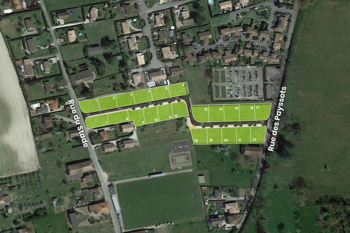Le lotissement Le Clos de l’Ourme est situé à environ 500m du centre bourg, avec son entrée Chemin des Léouges (43.719208, 1.102466).