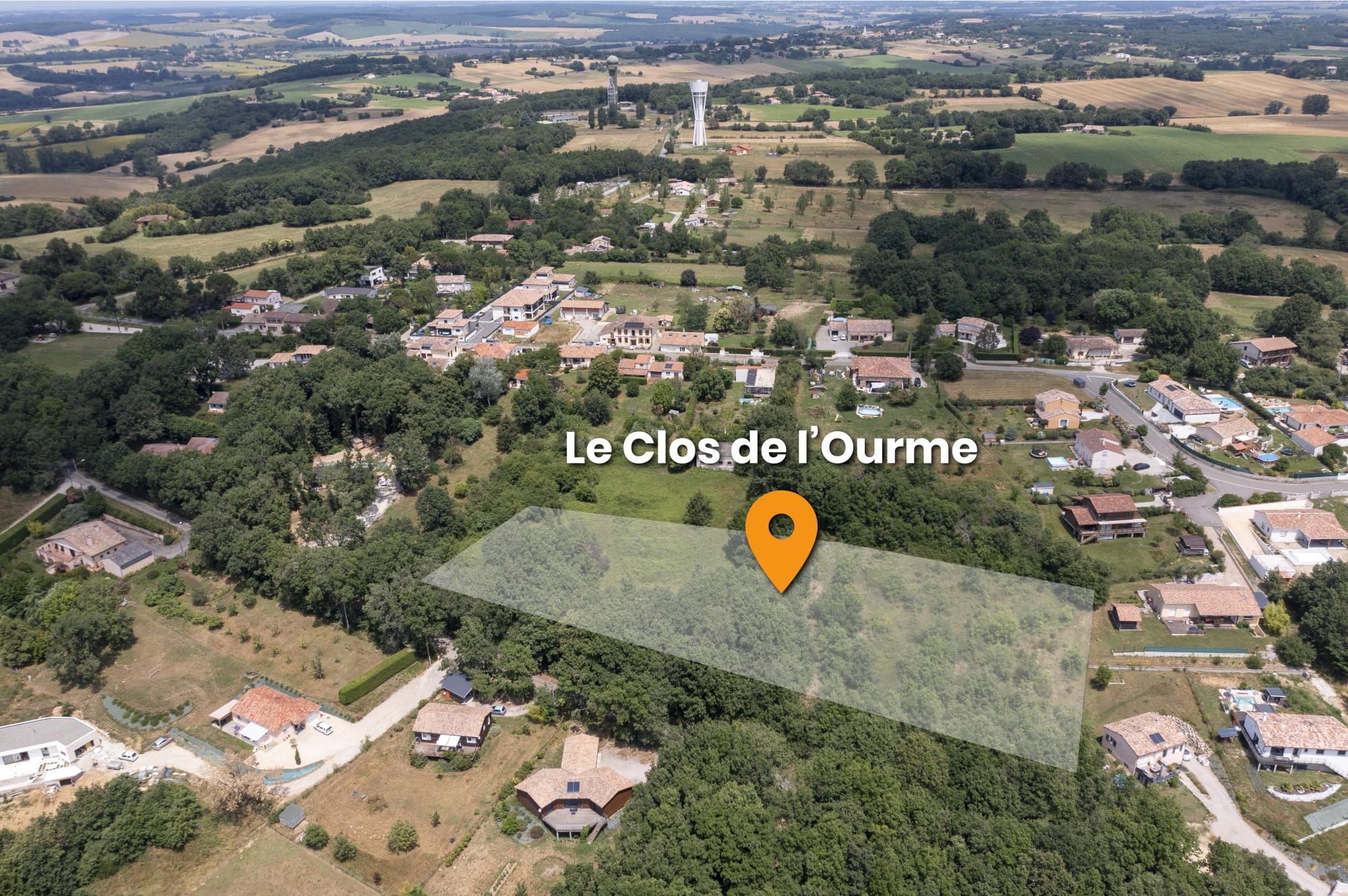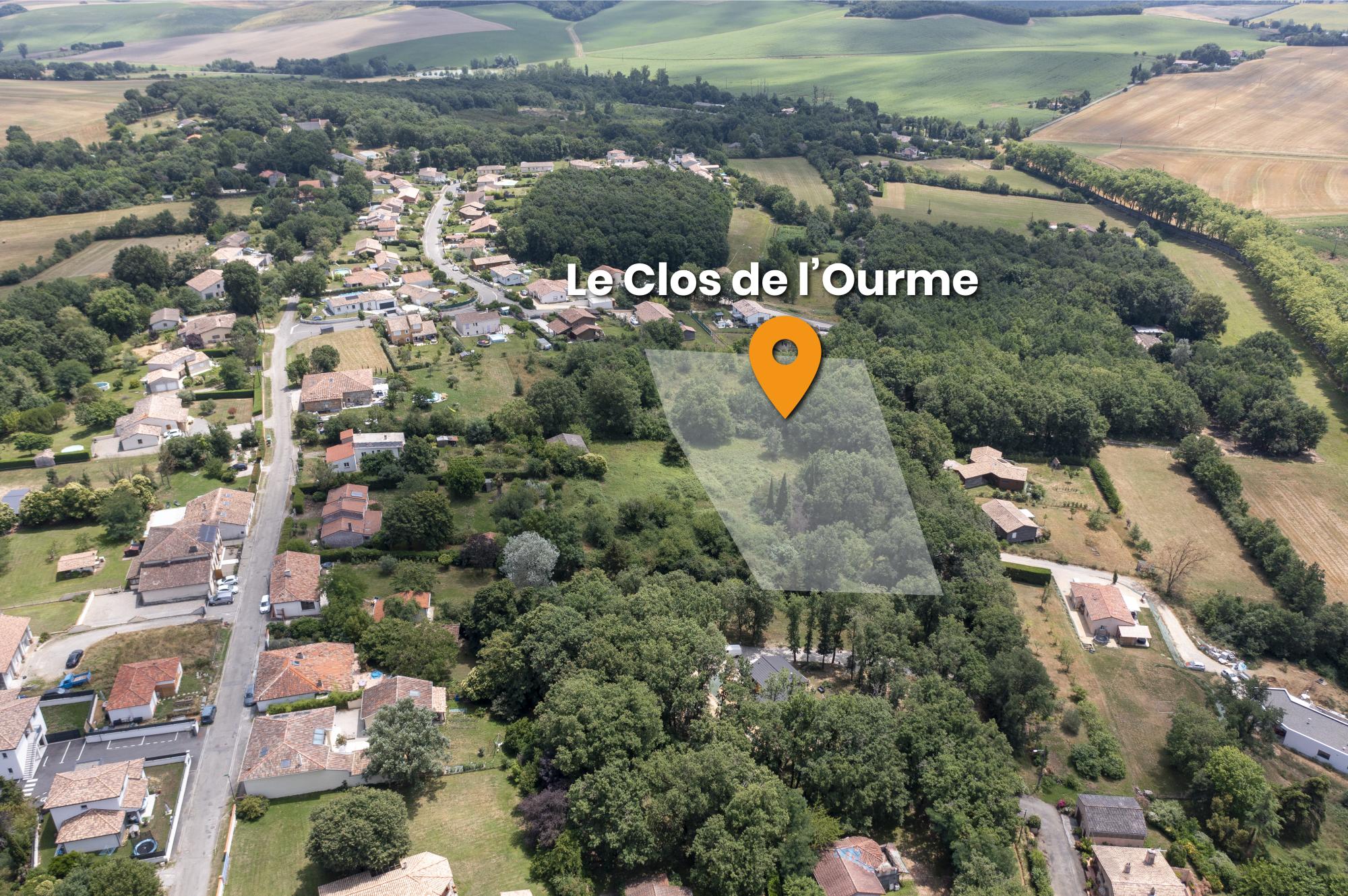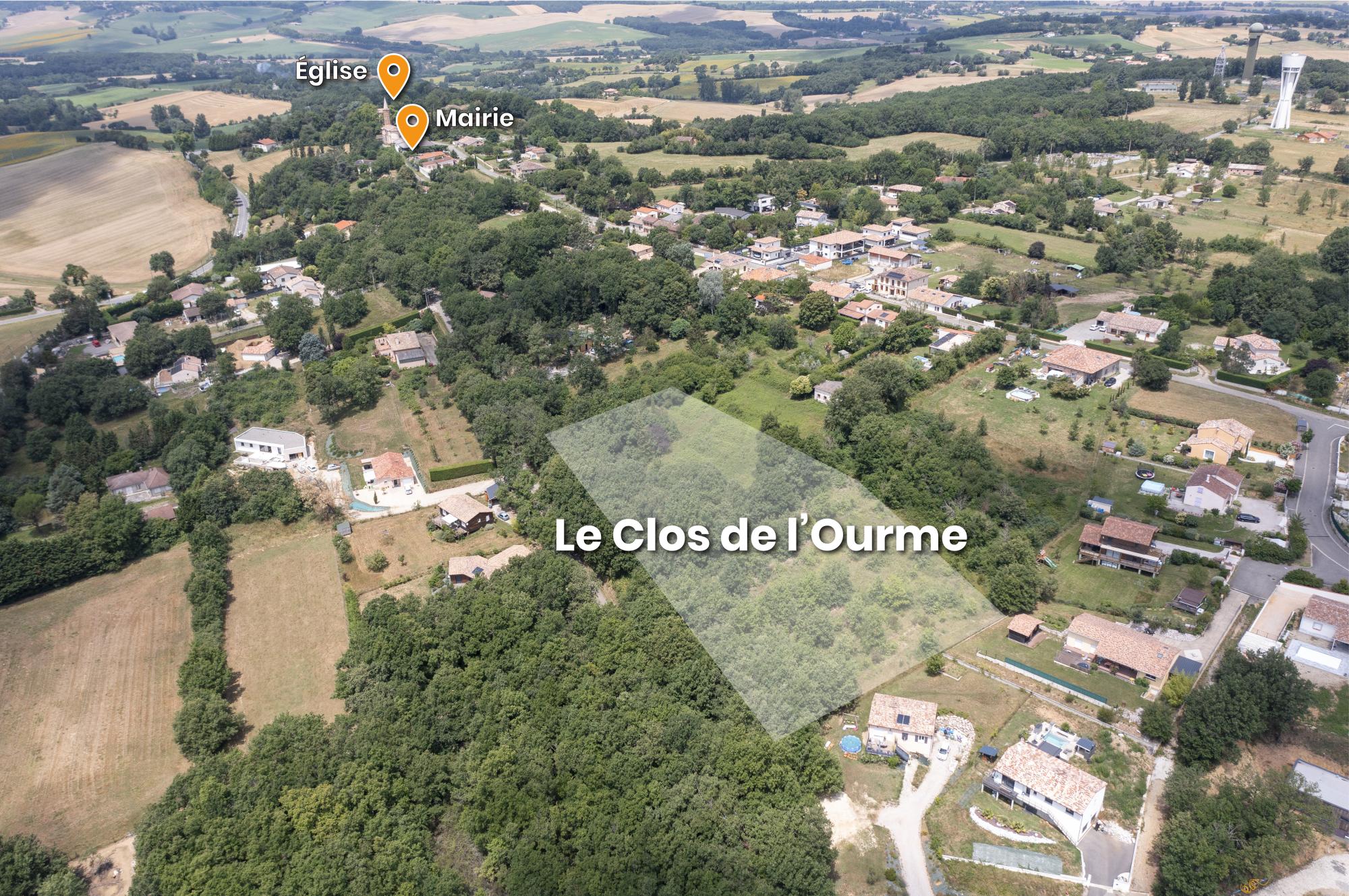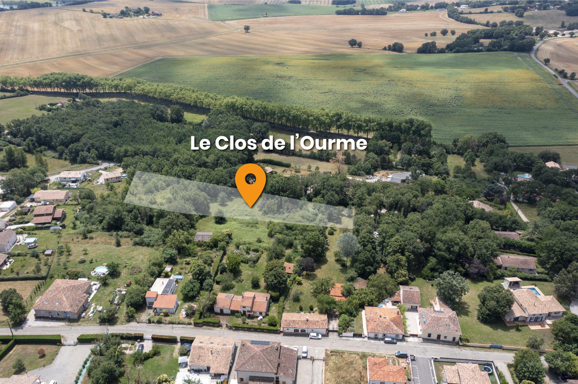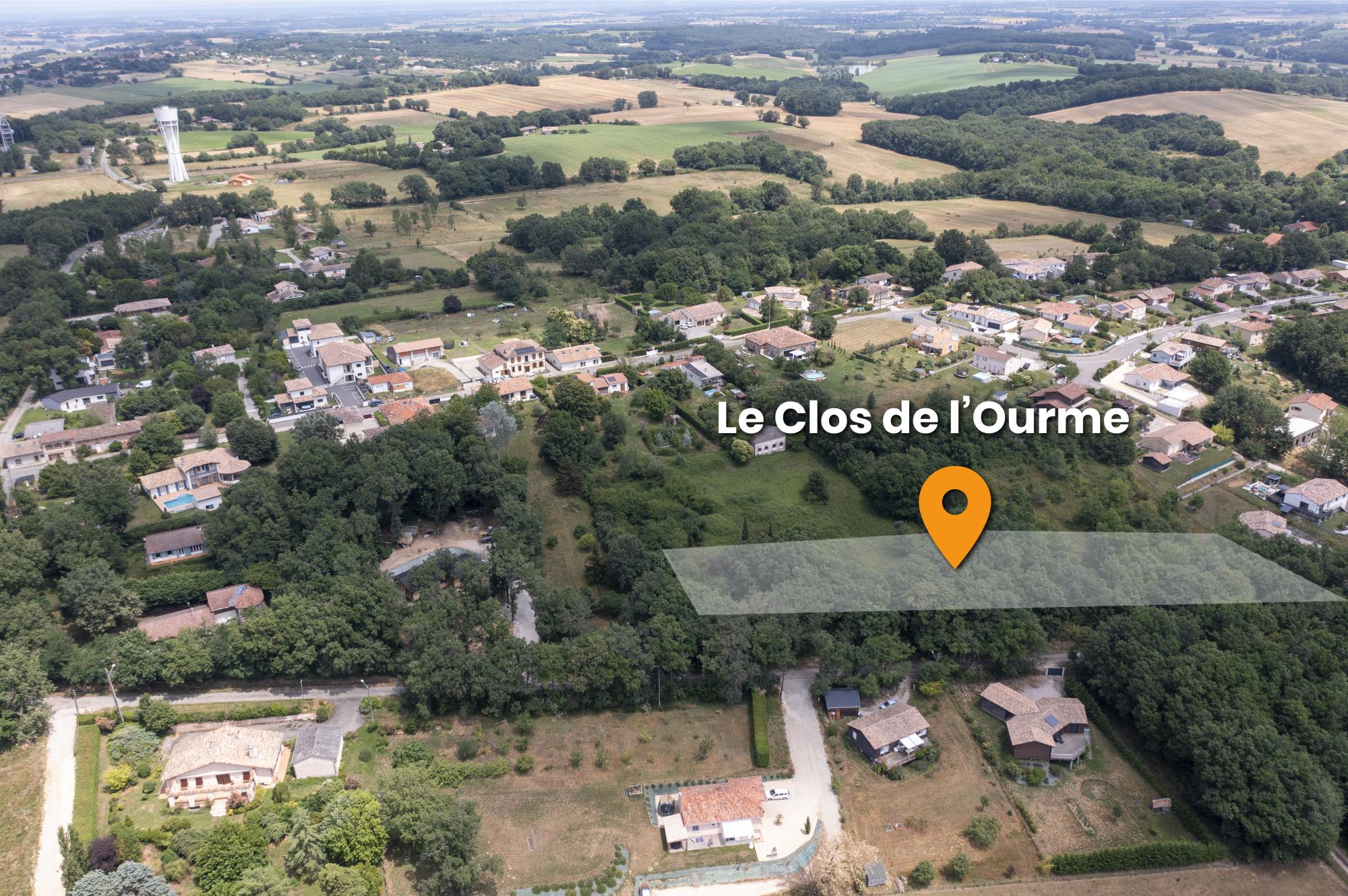 Le lotissement Le Clos de l’Ourme est situé à environ 500m du centre bourg, avec son entrée Chemin des Léouges (43.719208, 1.102466).